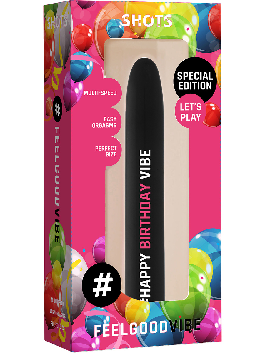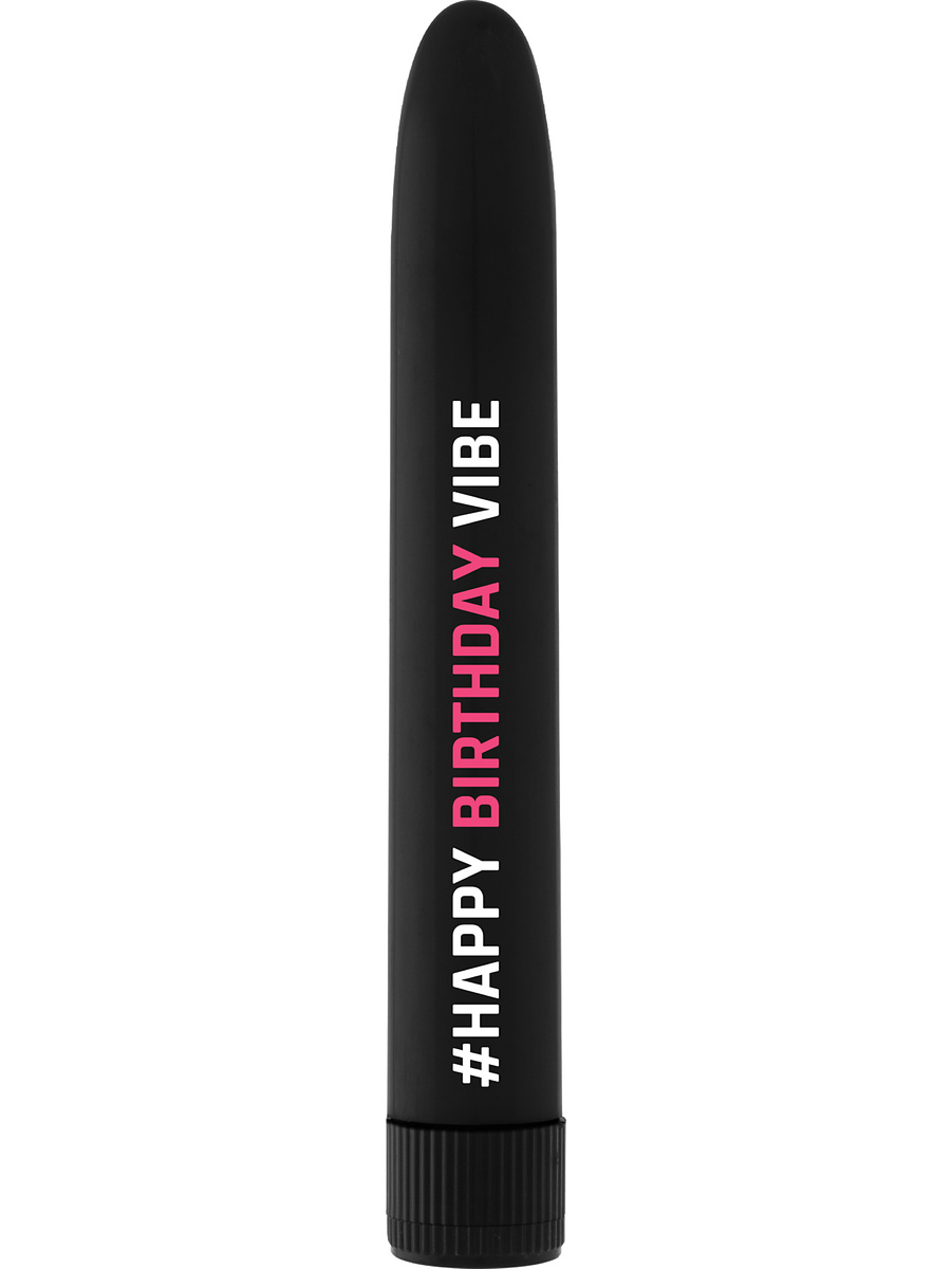 This is a classic and easy-to-use vibrator that delivers powerful vibrations for pleasant orgasms. On the vibrator is the text "Happy Birthday Vibe" - a hashtag that makes the vibrator a perfect birthday gift for someone you care about.