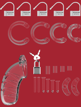 Thread both penis and scrotum through the ring, place the limp penis in the cage and secure it with the included padlock. Let your partner handle the keys and have the power to decide when it's time to break free. In addition, a number of plastic locks are included that can be snapped off if the temptation becomes too great.