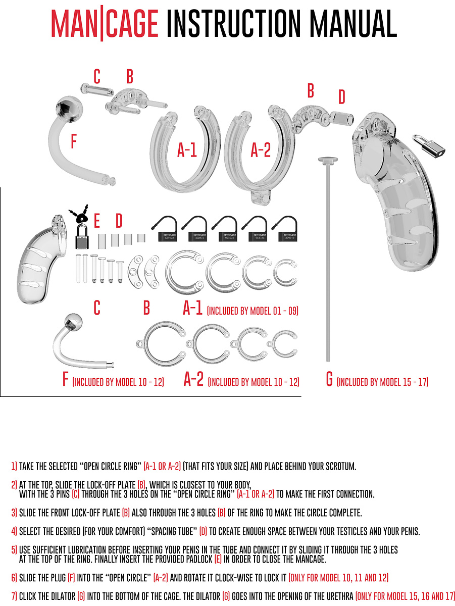 The cage consists of three parts that fit perfectly together. The base ring is connected with a pair of pins which are then connected to the cage itself. Your ManCage also comes with rings in different sizes and other important parts that allow you to create an optimal fit for your penis.