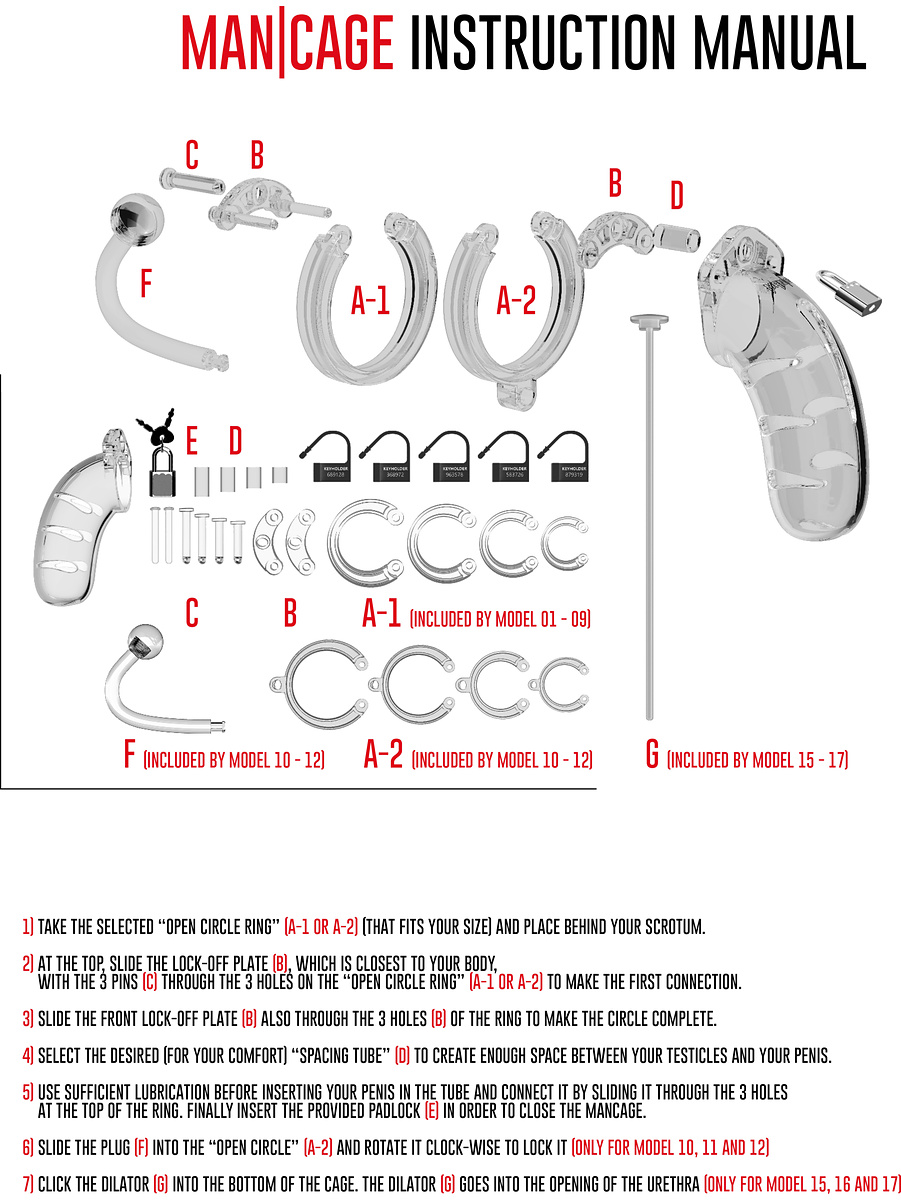 The cage consists of three parts that fit perfectly together. The base ring is connected with a pair of pins which are then connected to the cage itself. Your ManCage also comes with rings in different sizes and other important parts that allow you to create an optimal fit for your penis.