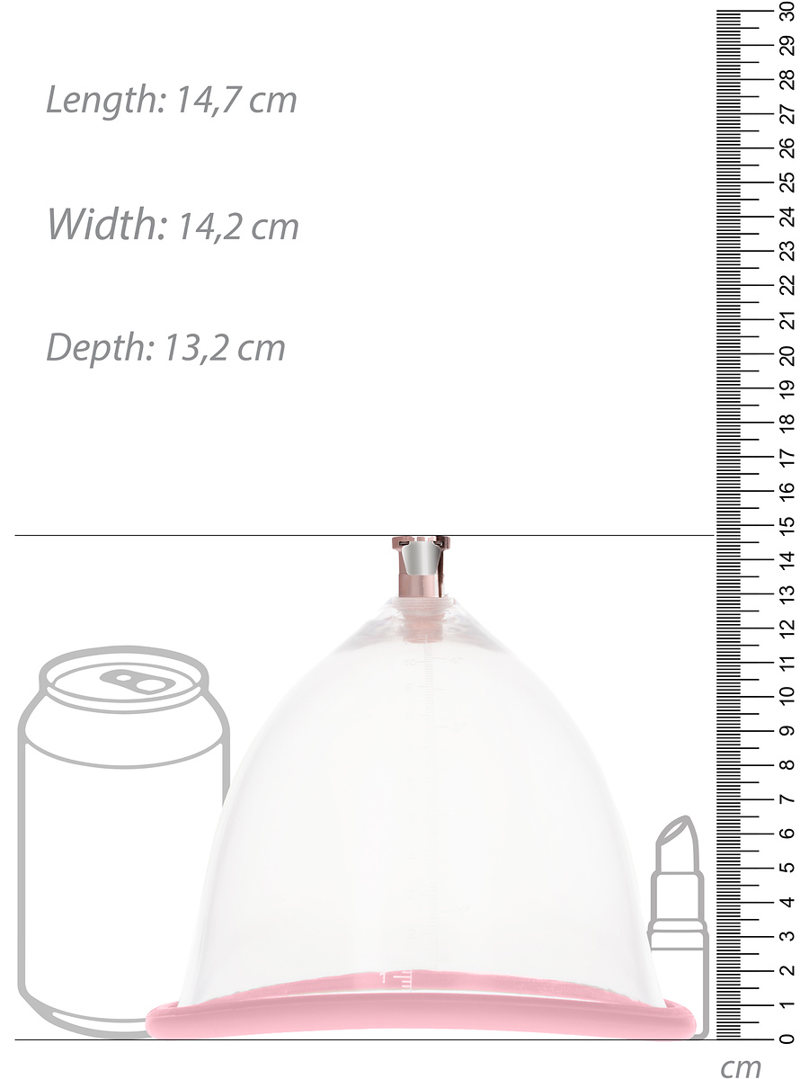 The cup that is placed over the breasts has a smooth silicone ring at the opening which creates both maximum comfort and optimal vacuum. The pump is very easy to use, attach the tube and place the cups over your breasts. Then pump to the desired effect using the hand pump. With the help of the valves on the hose, you can relieve the pressure at any time.