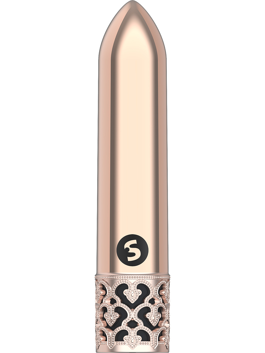 You don't have to be royalty to enjoy the elegant Royal Gems range. The luxurious, shimmering and rosegold-finish in ABS-plastic makes this clitoral vibrator a crown jewel in the collection.