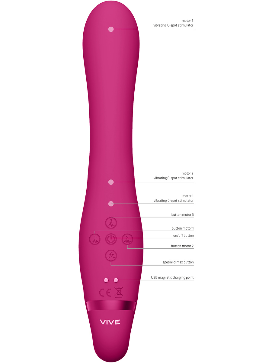 The three motors can be controlled separately via the buttons on the toy, which allows you to explore as many as 1000 different pleasure combinations.