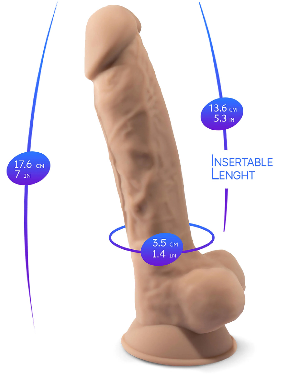 The dildo has a realistic design with marked glans, pulsating veins and scrotum. At the bottom is an effective suction cup that allows you to attach the dildo to flat surfaces for hands-free pleasure.