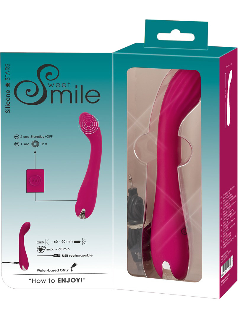 This is a wonderfully curved G-spot vibrator from Sweet Smile with a flexible shaft and large tip with stimulating grooves that target the G-spot. It can also be used to stimulate the male prostate.