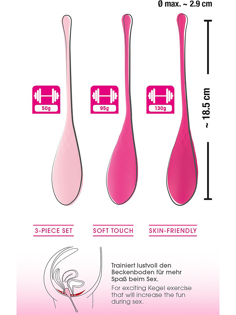 The balls are also stimulating in the meantime and your training will be filled with pleasant pleasure. The more trained you become, the heavier bullets you can try. Use the balls for 15-30 min, at least three times a week, and experience the difference.