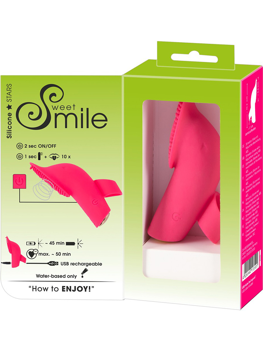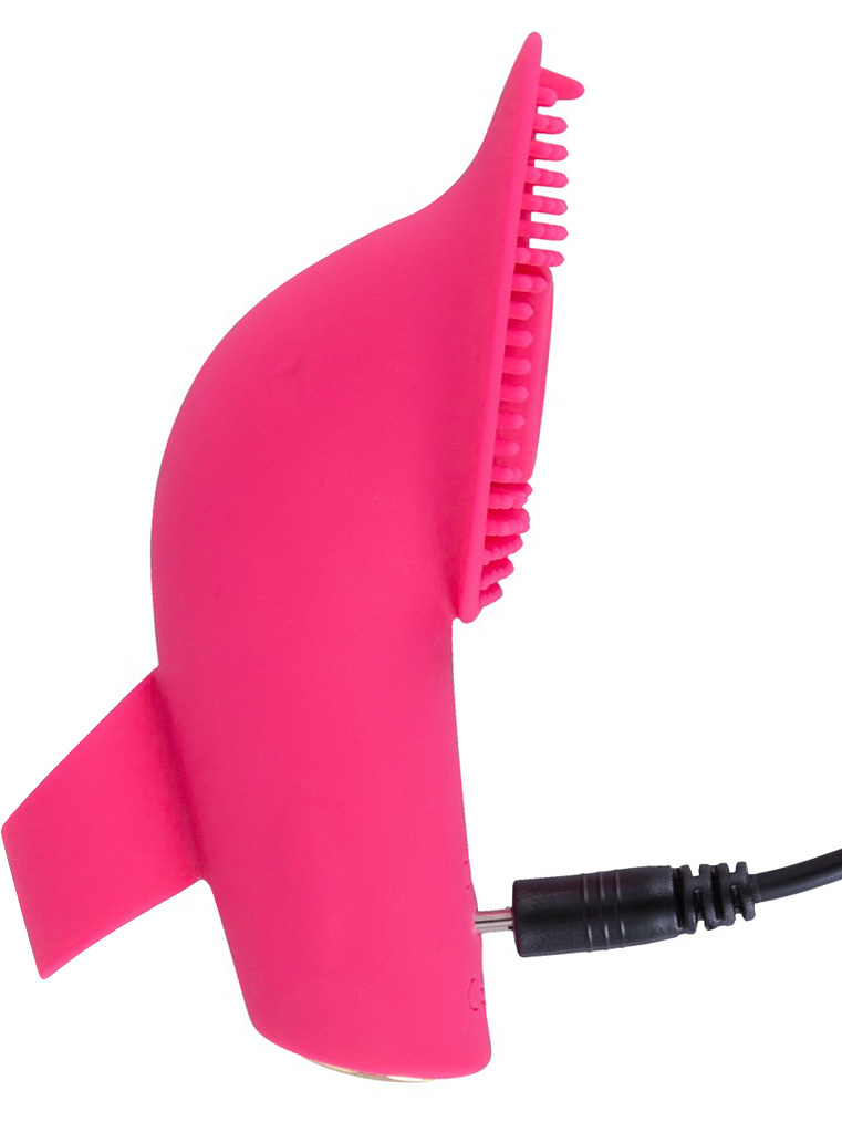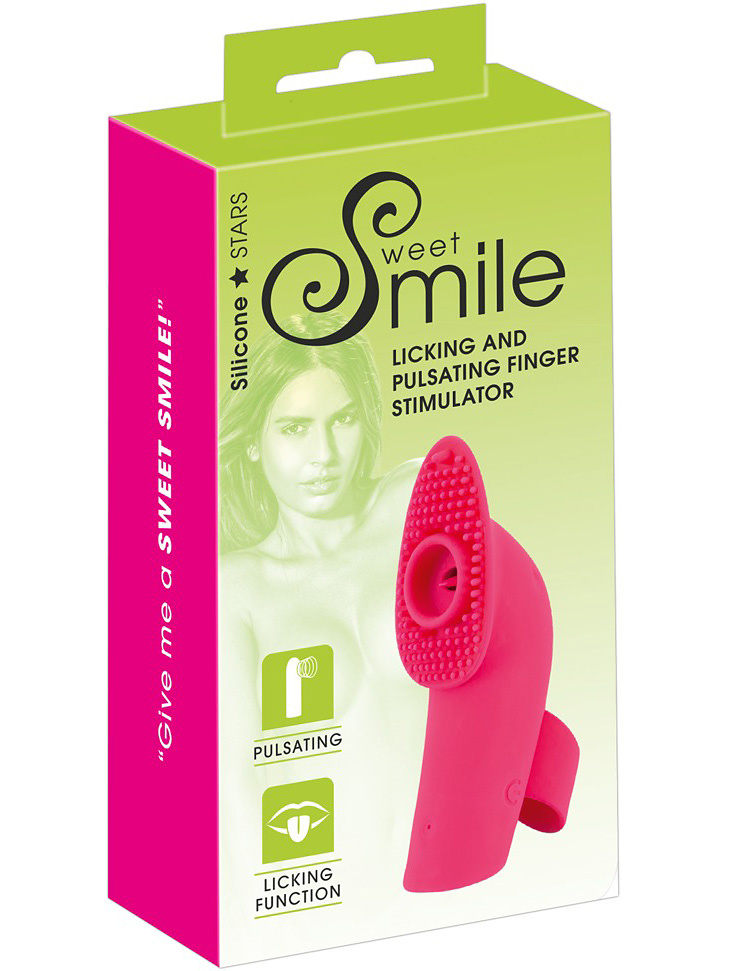 This is a licking and pulsating finger stimulator from Sweet Smile that simulates the sensation of oral sex with its tongue moving at 10 different speeds. It also has a pulsating/suction function in the surface with soft knobs. Everything can be easily adjusted with the button on the toy.
