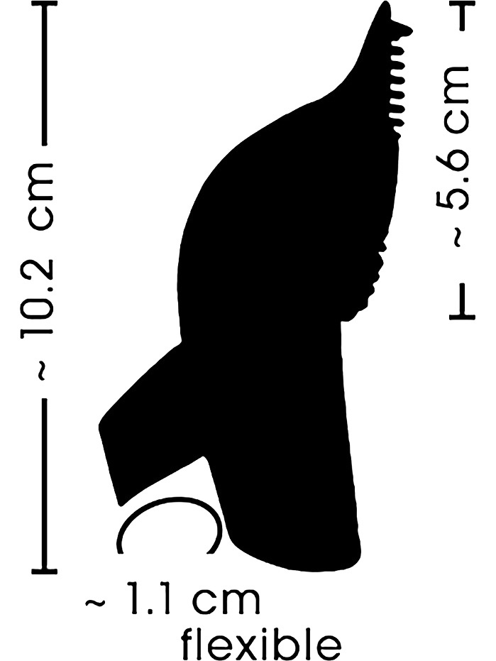 Length – 10.2 cm. Knotty surface - 5.6 x 3.2 cm. Diameter of opening – 1.6 cm. Diameter of finger loop - 1.1 cm (flexible).