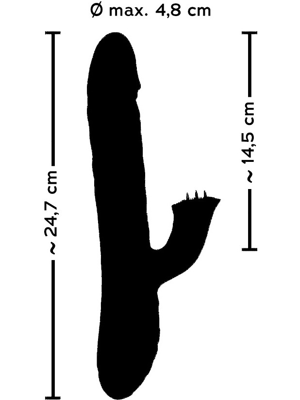 This unique rabbit vibrator has many exciting functions for a perfect double stimulation. The shaft with a stimulating texture and marked tip like a dildo offers both a penetrating thrust-function and rotating beads on the inside. Choose between three different modes.