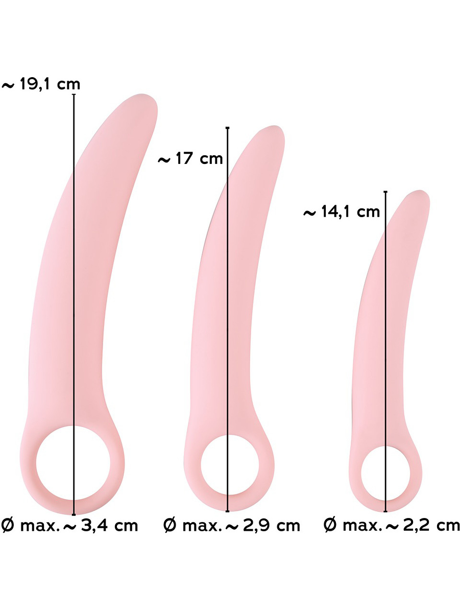 Vaginal Trainers are a set of three silky-smooth dildos in different sizes - perfect for pelvic floor-training or for gradually getting your vagina used to penetration.