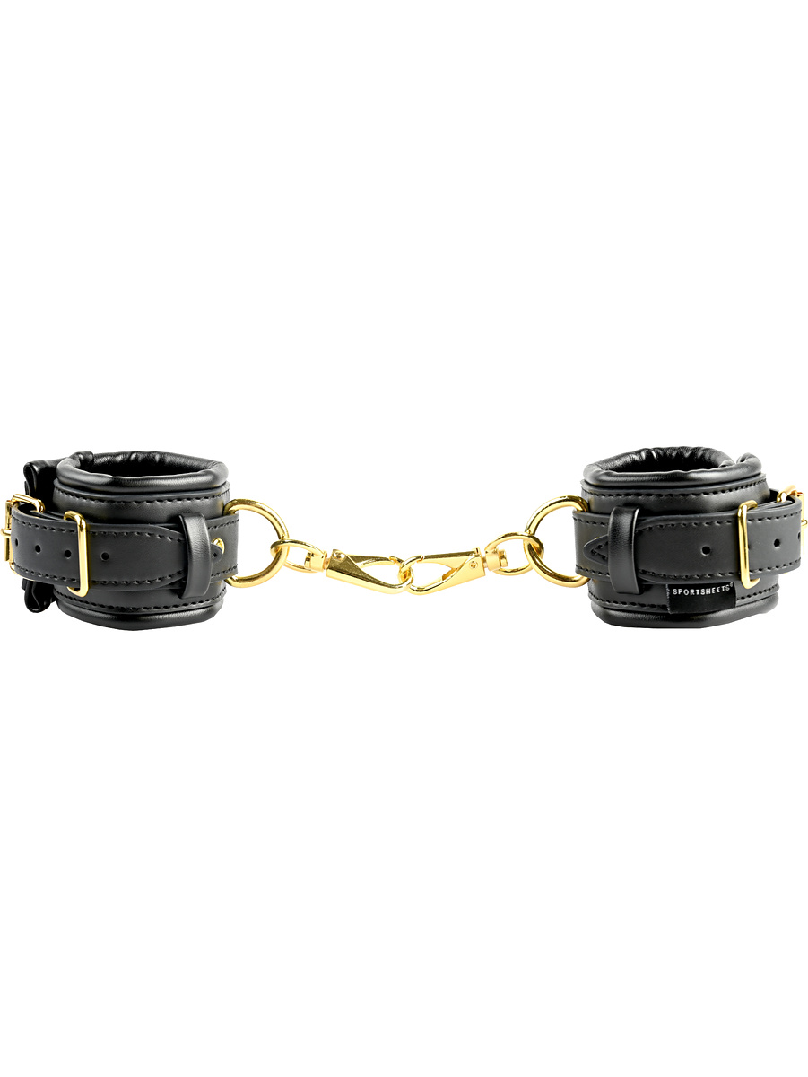 These exclusive cuffs are adorned with golden buckles, D-rings and carabiners that provide a luxurious and visual experience. With the buckles, you can adjust the size for a perfect fit for both wrists and ankles