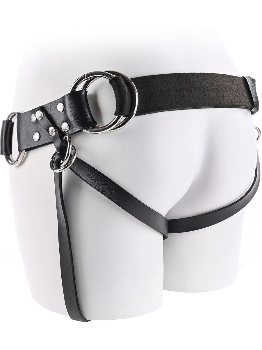 The harness is adjustable for a good fit. It fits up to 175 cm in waist-measurement. Excess strap-material can be carefully cut shorter to fit your bodytype. With the push buttons at the front, you can easily change the O-ring to attach dildos of all possible sizes.