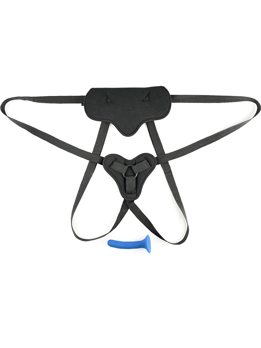 New Comers is a soft and comfortable strap-on harness with adjustable nylon-straps that provides a perfect fit for you with a waist measurement of up to 183 cm. With a padded pad both front and back, your sensitive areas are protected even during tougher games.