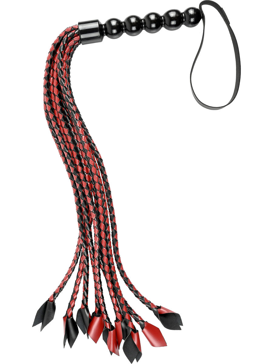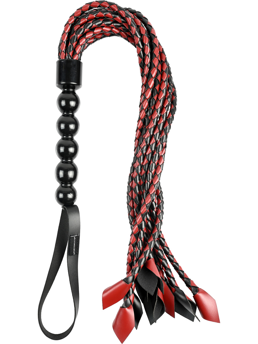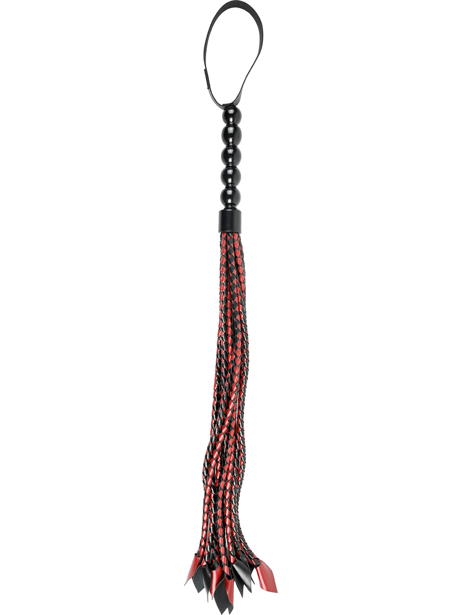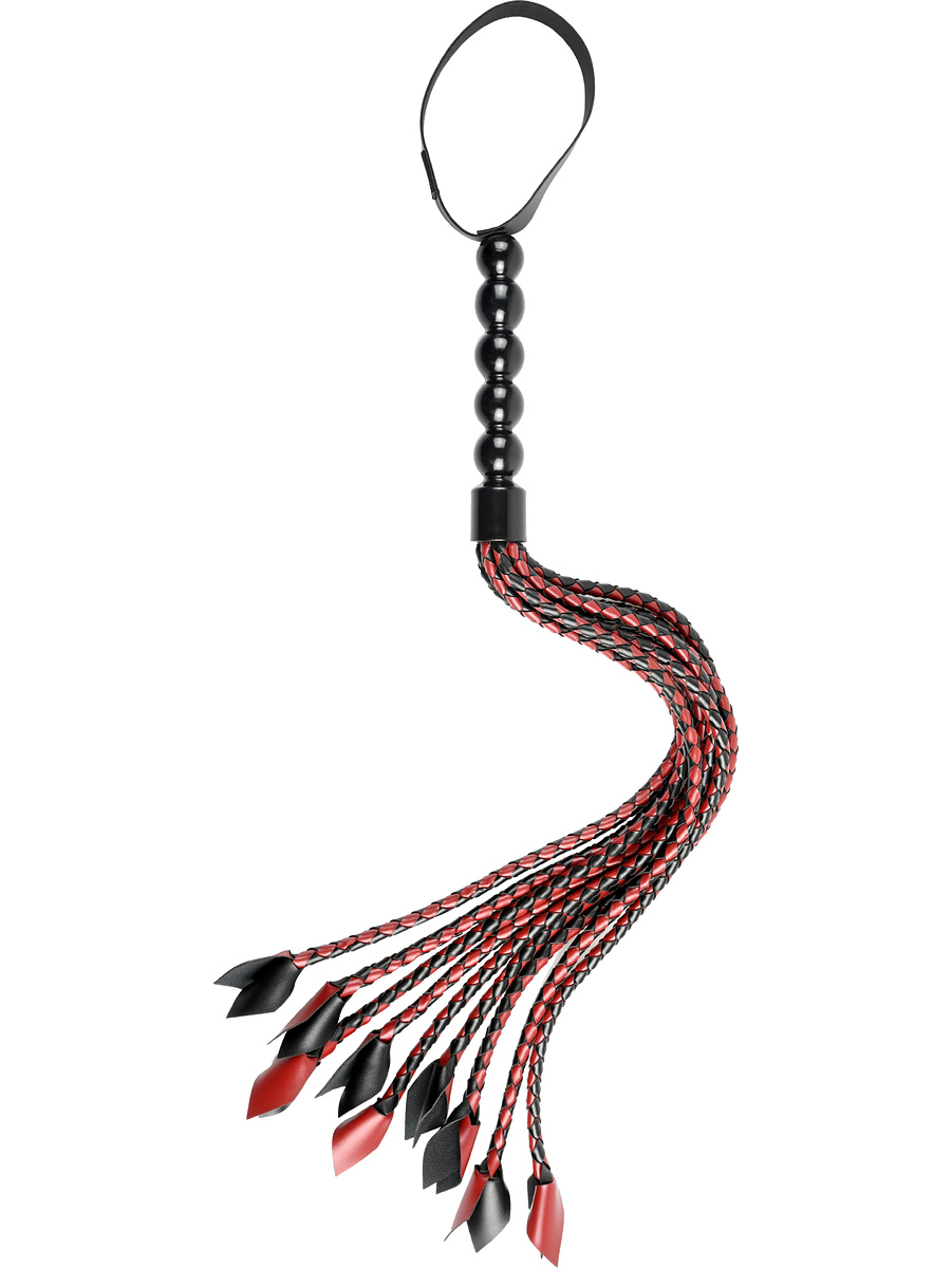 Amp up your spanking-play with this whip. Each of these braided faux-leather whips ends with an unbraided top reminiscent of a riding whip. The braids land intensely on your partner's naked body.
