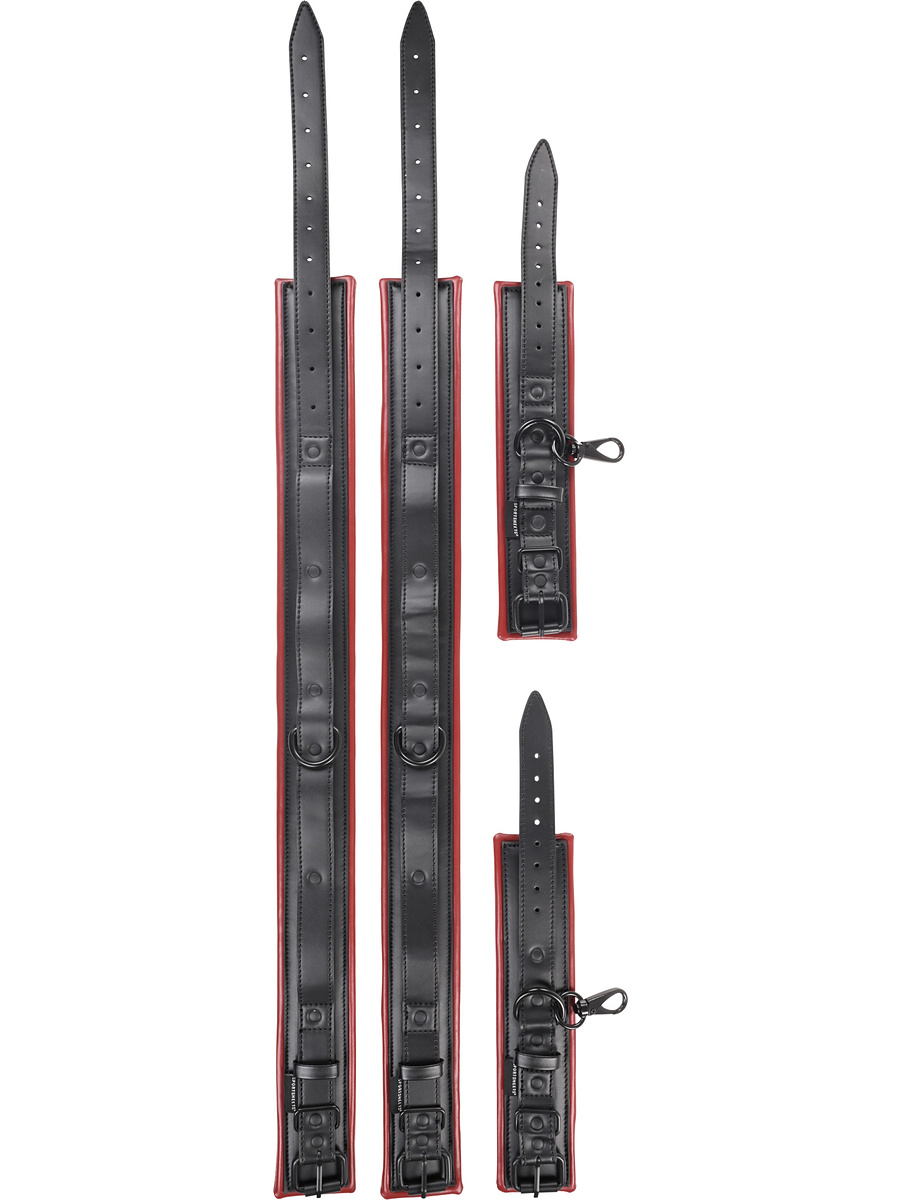 The handcuffs can be attached to the thigh straps via carabiners to limit movement. Let your imagination run wild and explore all limitation possibilities.