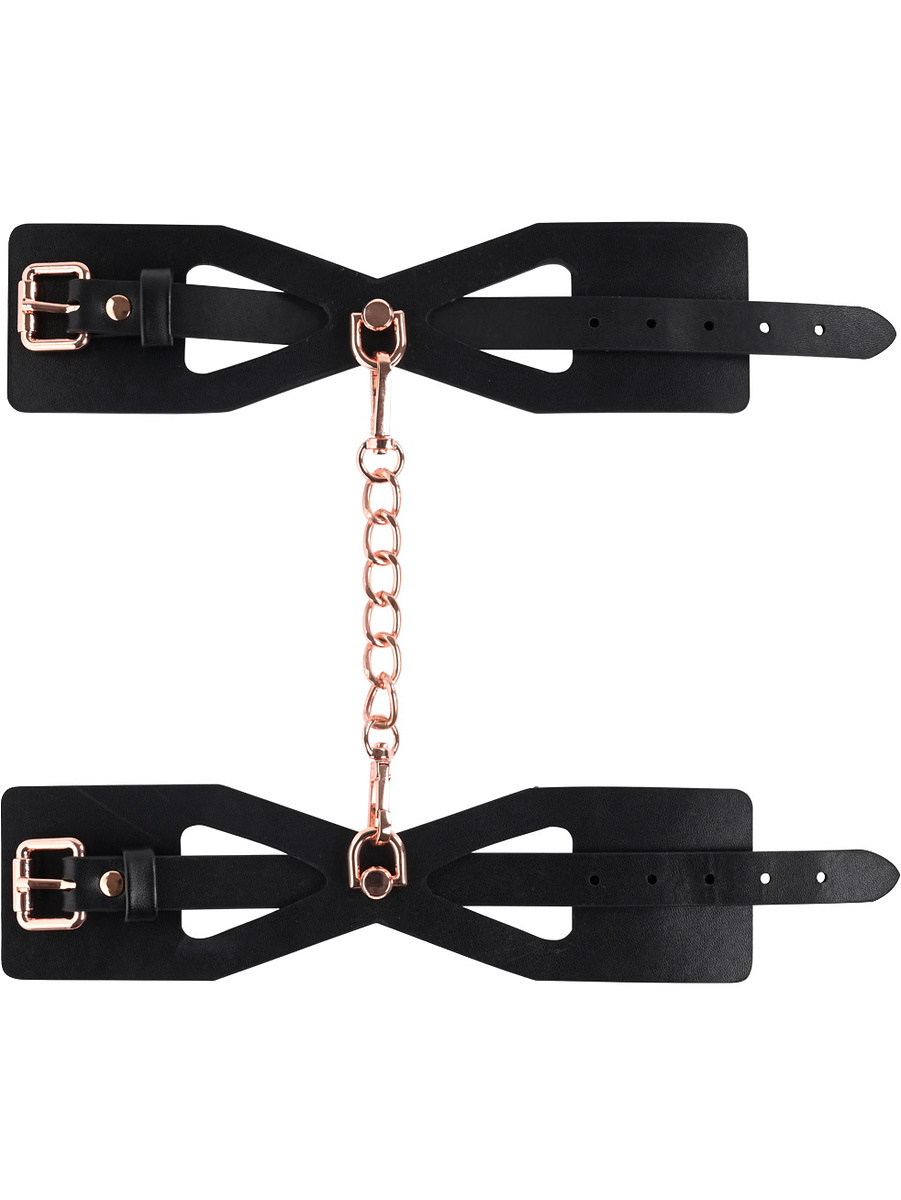 Brat Handcuffs are a pair of exclusive handcuffs with a corset-like design and a rosegold metal chain (nickel free) that gives a luxurious look. The handcuffs are adjustable for a perfect fit and made of PU-leather for good durability. Explore exciting bondage-play together with your partner!
