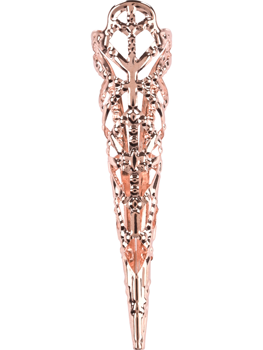 The rose gold fingertips have an ornate design that gives a luxurious look. They are adjustable to fit all finger-sizes and are made of manganese steel for durability.