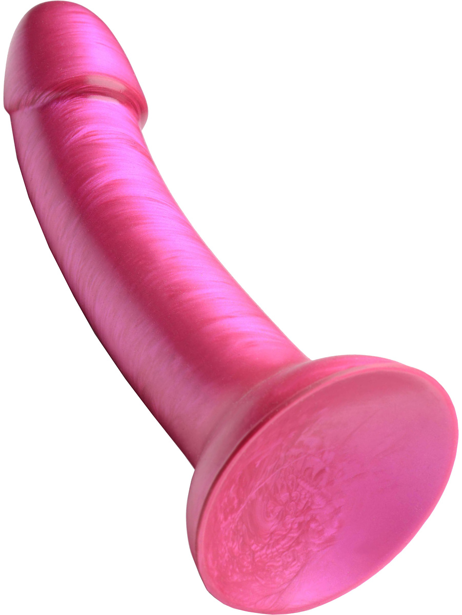 This metallic silicone dildo has a beautiful, shimmering sheen and gorgeous pink color. A perfect addition to your toy-collection.
