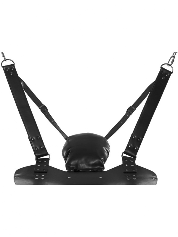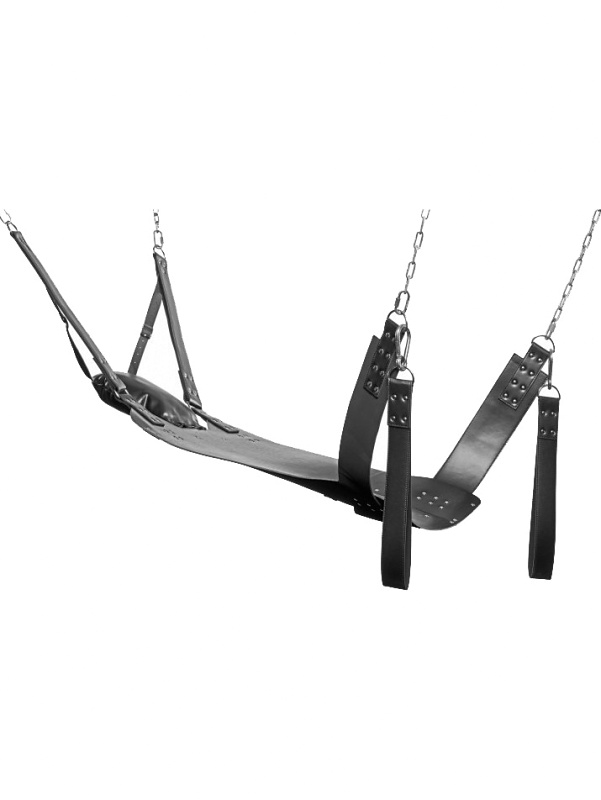 The swing and the straps are made of durable and strong leather. At the top you have chains that you in turn attach to the ceiling. One side of the swing also has a nice pillow for the head and the other side has 2 straps that allow the legs to take more spread positions.