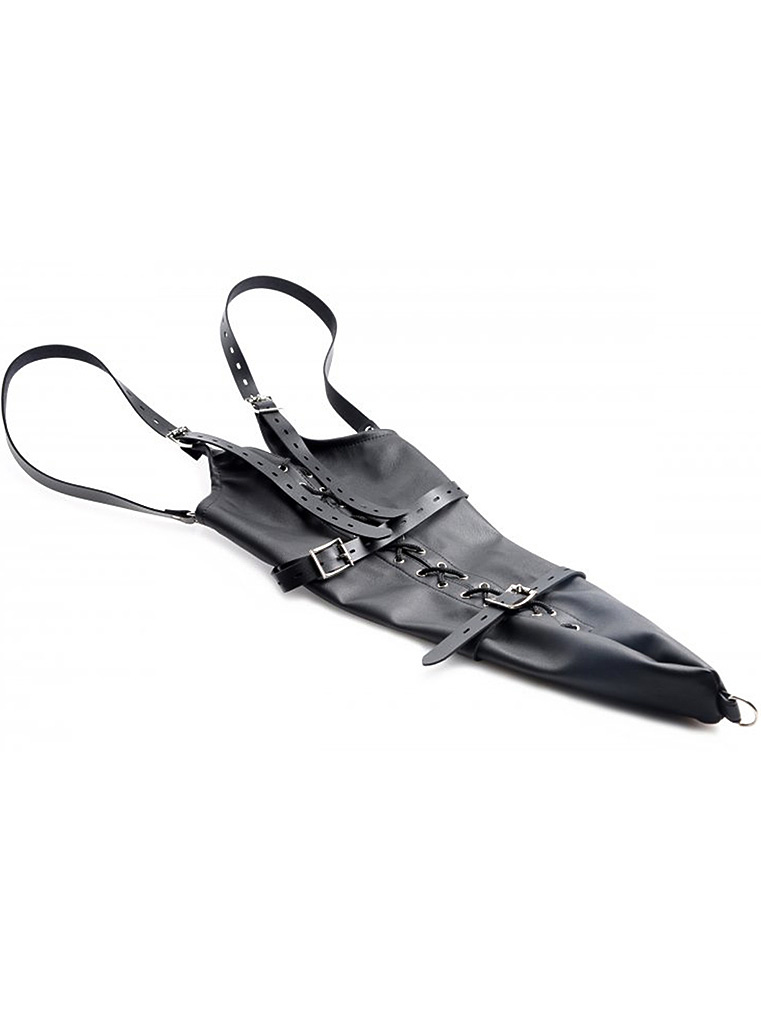 Place your partner's arms in the sexy sleeve, secure the lacing and adjust the four straps so they are tight but at the same time sit comfortably. On the buckles there is a loop where it is possible to place padlocks (not included) to make the feeling of control even more clear when there is no longer any hope of escaping.