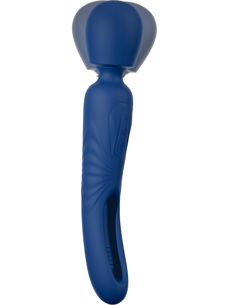 At one end is a flexible massage head that stimulates the body's erogenous zones. Its long and ergonomically shaped handle can also be used as a stimulator vaginally or anally. Inside the shaft is a soft and grooved tongue that moves back and forth for a tapping stimulation.
