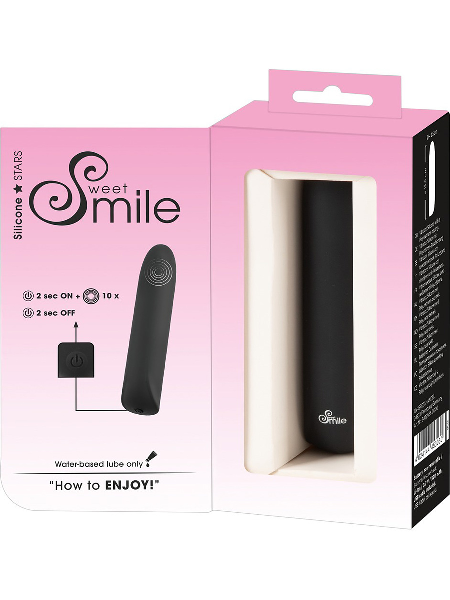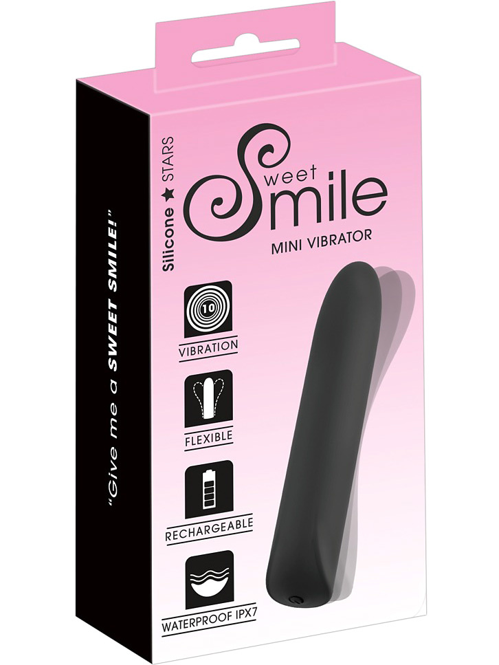 This is a light and compact mini vibrator from Sweet Smile with 10 powerful vibration-modes that you can easily control with the push of a button. The vibrator is flexible and made of silky-smooth silicone for a fantastic touch during solo-moments or partner-play.