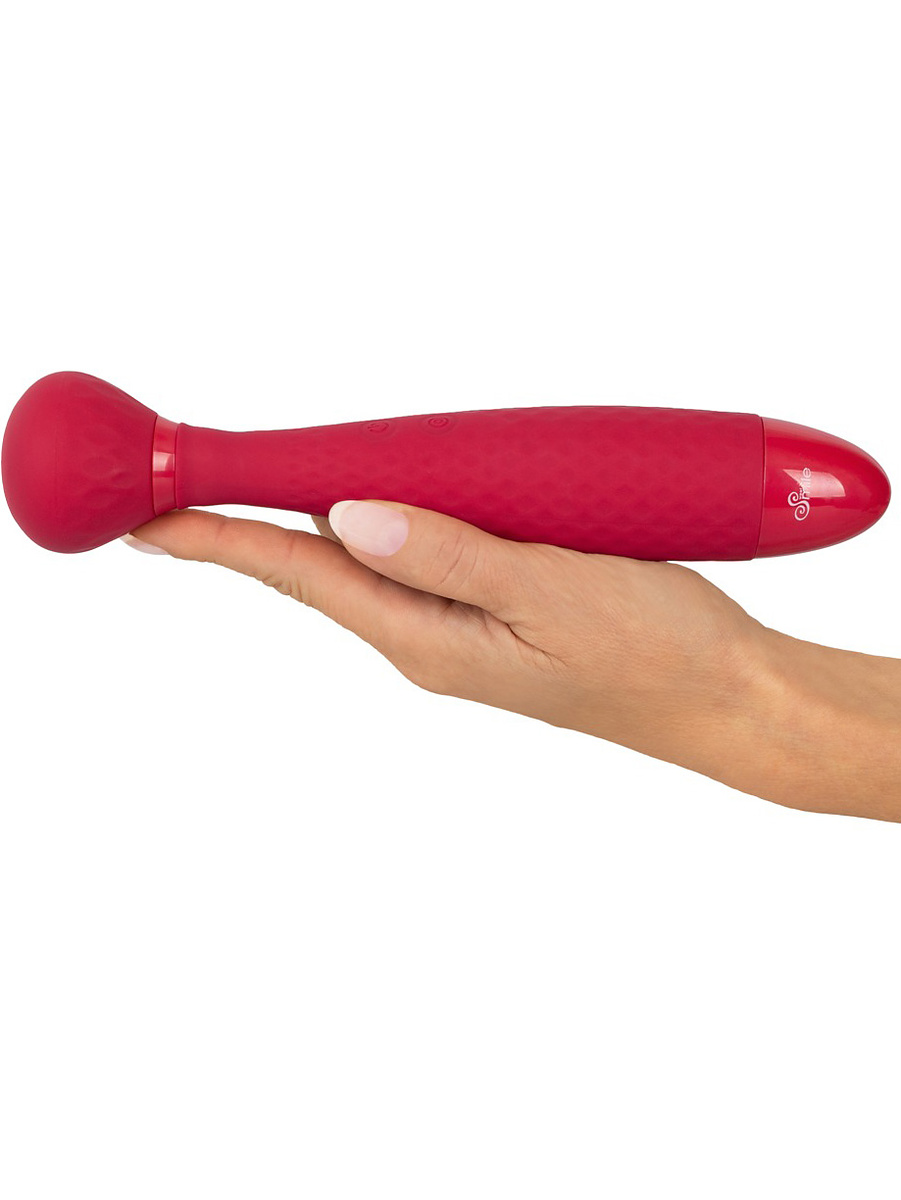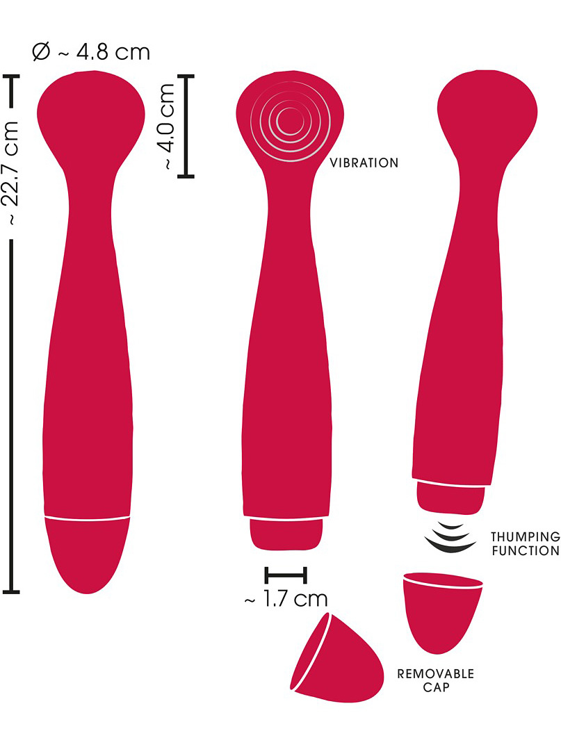 Wand with Thumping Function is a compact stimulator that can be used from both sides and surprises with two different functions: the round massage-head stimulates with vibrations and the end of the handle stimulates with thumping pulsations. Perfect for versatile full-body massage and targeted point-stimulation – alone or with a partner.