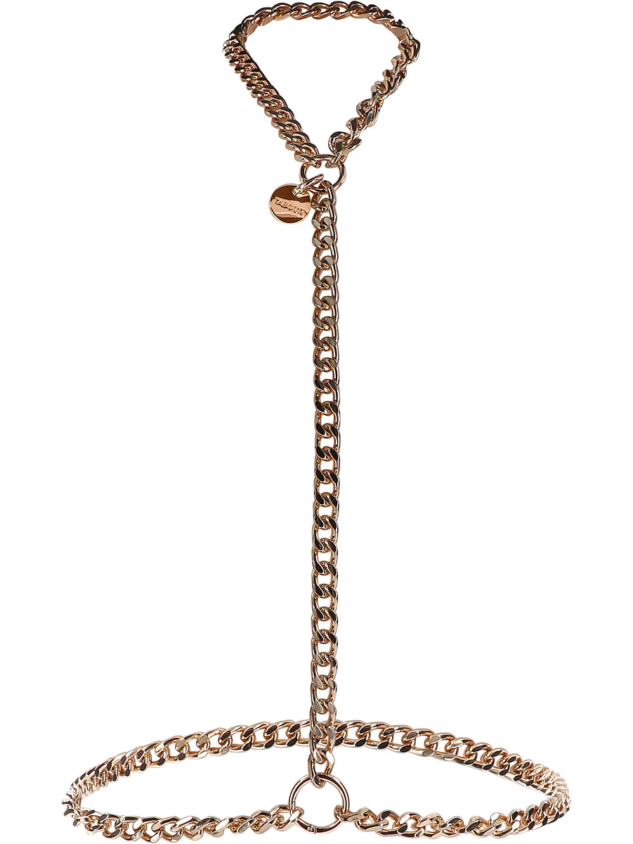 The Dona Statement Harness is an elegant harness in metal that sexyly adorns your body. The harness is strong, made of shiny rosegold metal (nickel-free) and perfect for a kinky adventure. You can also wear the harness as a sexy and stylish accessory.