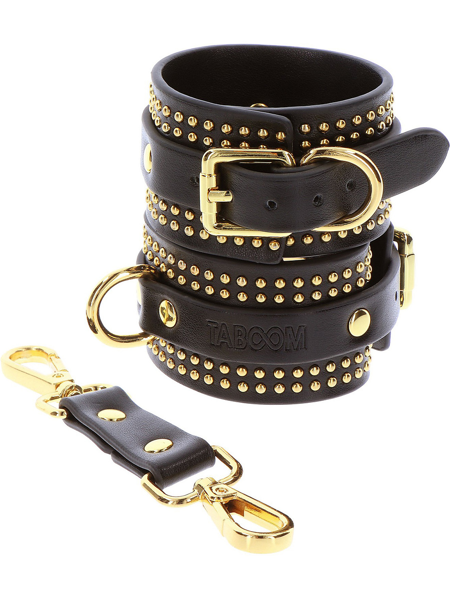 These luxurious foot shackles guarantee quality time and adventurous bondage-play together with your partner. The ankle cuffs are easy to use and adjustable using holes and buckles for the best fit. They are elegant black with gold details that exude an aura of luxury that is irresistible.