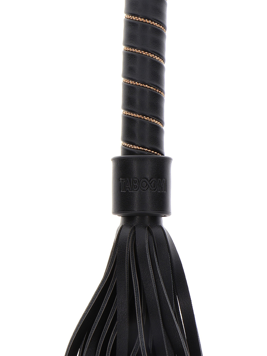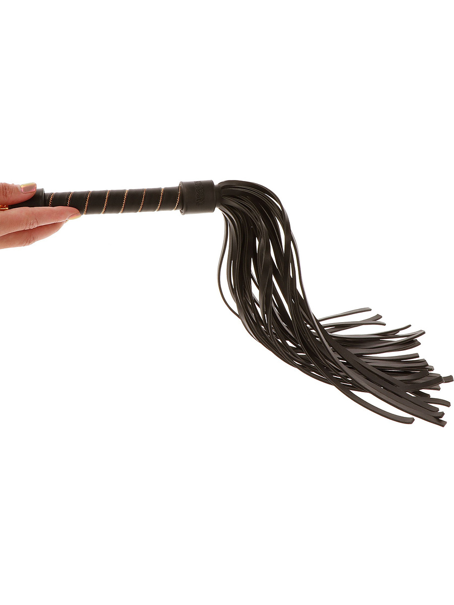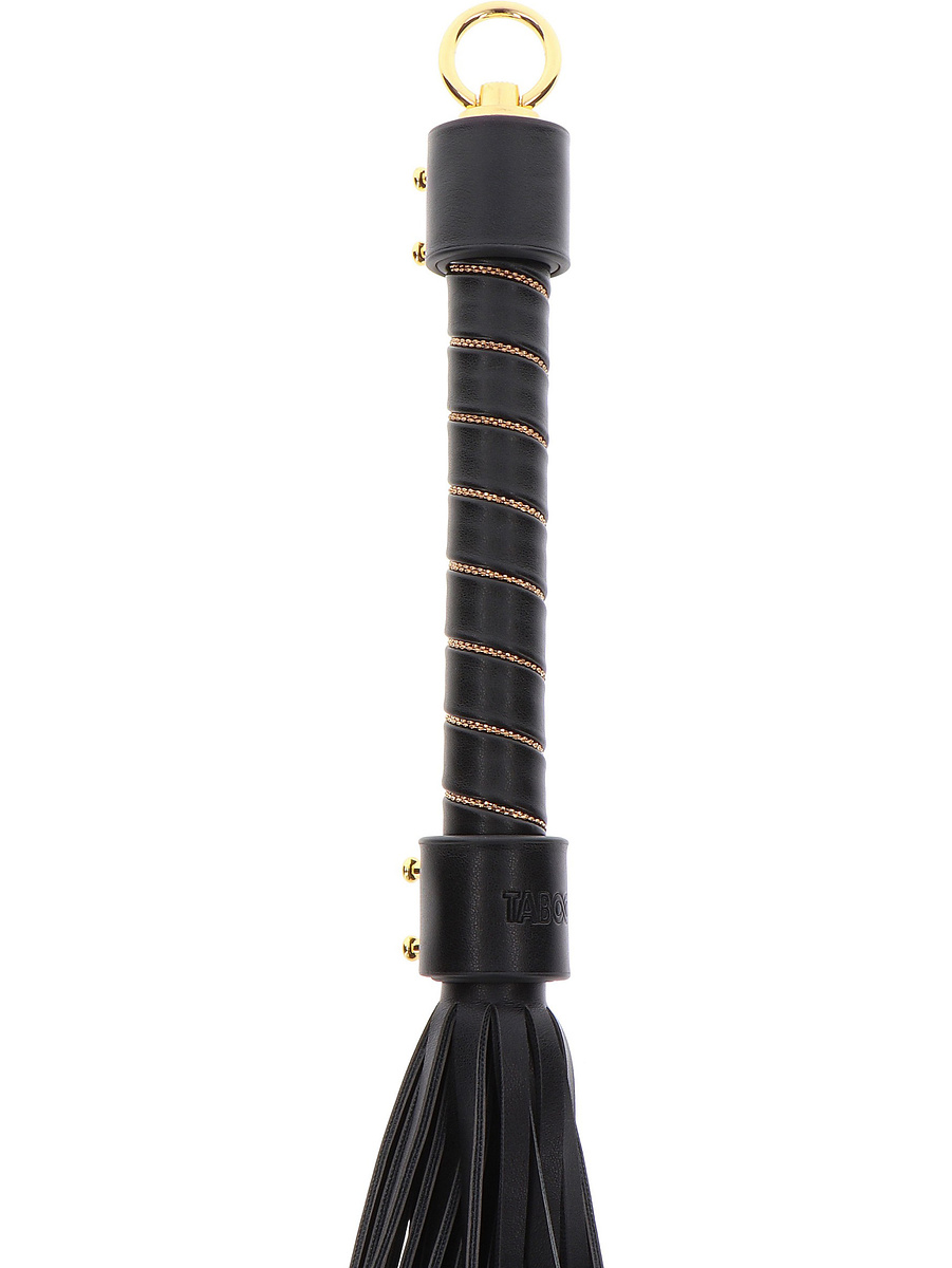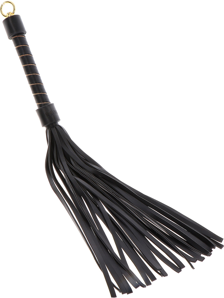 Spice up your kinky and adventurous spanking play with this exclusive flogger whip. The flogger has many tearing lashes that land intensely on your partner's bare skin. The easy-to-grip handle gives you full control over the strokes - caress gently with a tickling touch or spank harder for more punishment. The handle is also adorned with sophisticated gold detailing and a metal ring that allows you to hang the whip.