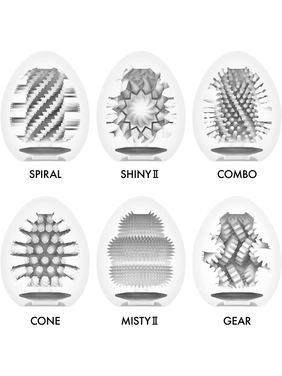This package contains 6 Tenga eggs with completely different textures and with slightly firmer material for a stronger stimulation and more intense feeling:
