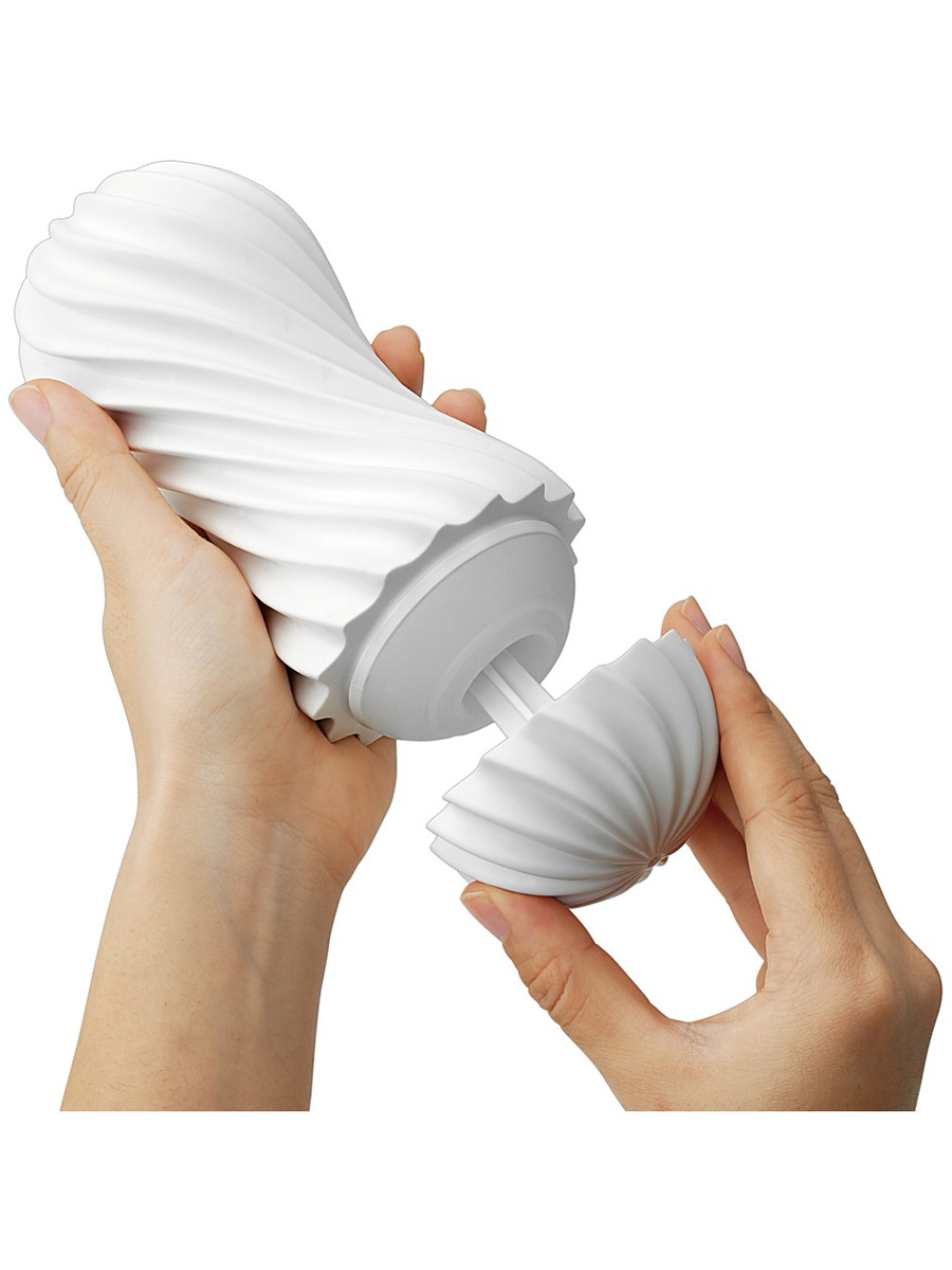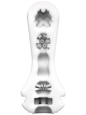 Flex Silky White features a softer structure than its sibling model, making it ideal for users who prefer a milder level of stimulation. The inner structure is filled with spiral-shaped bumps and ridges that massage the entire shaft as you move in and out. By covering the air hole at the top, a pleasant vacuum sensation is created to intensify the feeling. The flexible, ribbed exterior allows you to easily adjust pressure and angles to match your preference.