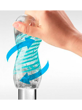 The unique feature of this type of masturbator is that, with the help of a spiral coil on the inside, it twists around your penis as you penetrate it and moves it up and down over your penis. This nice movement imitates the feeling you can get from the small twist movement during a really good handjob.