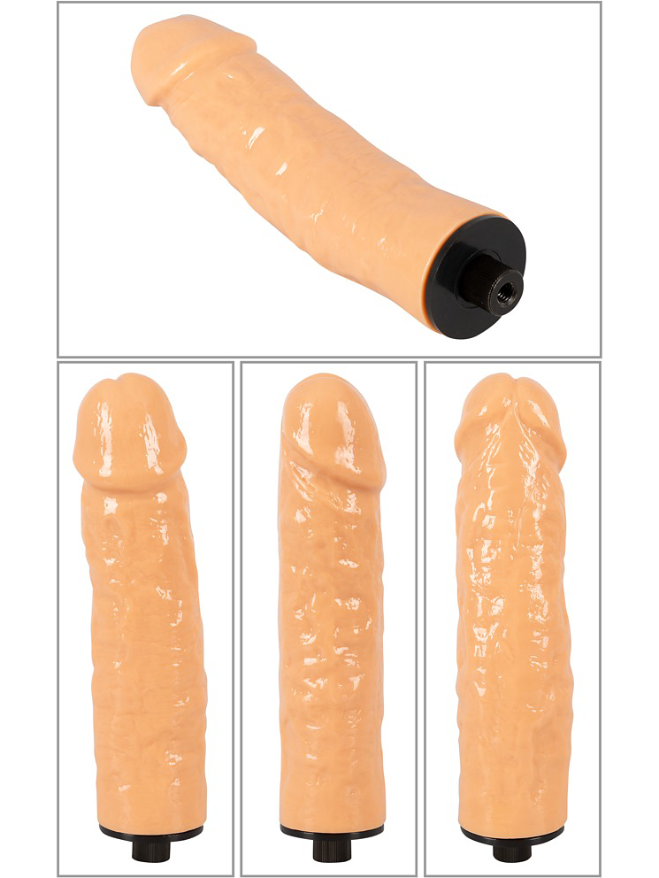 The realistic dildo is easily screwed onto the thrusting rod and can be perfectly adjusted in height and angle. The supplied hex key can also be used to optimally adjust the thrusting length (up to 8 cm) and the thrusting frequency. With the wired remote, you can then control the speed (60 – 190 thrusts per minute) via its rotary control. The cable length is 1.83 cm, which means that your partner can also easily control.