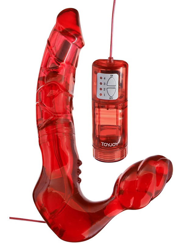 The internal part has a grooved surface, while the clitoris is stimulated by small knobs at the base of the dildo. In addition, the vibrator is wired and offers four different vibration levels, which are easily adjusted with a convenient remote control.