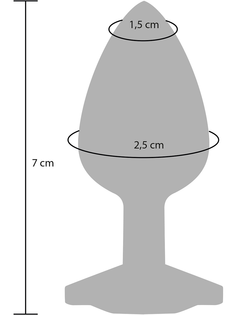 The egg-shaped plug has a tapered top for comfortable insertion, while the narrow and flexible neck keeps it comfortably in place. The wide base with the fake diamond not only gives it a shiny look, it also prevents the plug from slipping in too far.