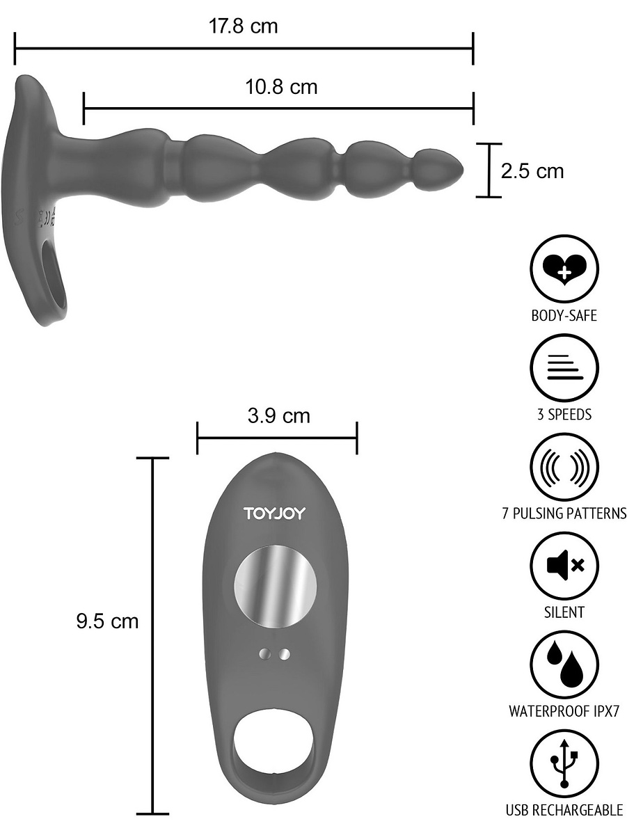 With the ring around the base of the penis, you will feel how your erection becomes stronger and longer-lasting. The ball-shaped shaft provides a fantastically pleasant stimulation that is intensified with its powerful vibrations.
