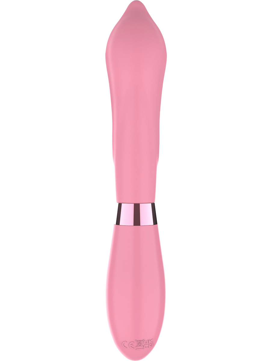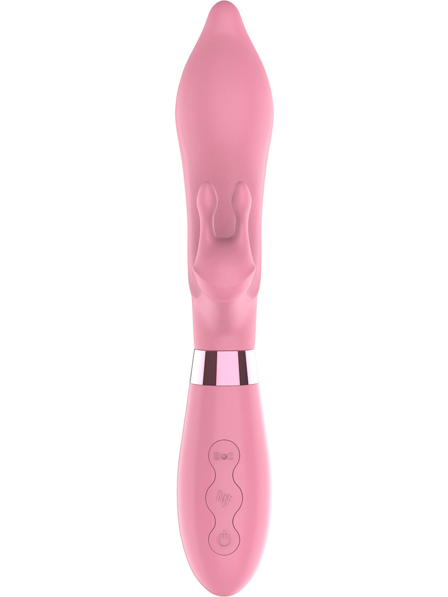 This luxurious rabbit vibrator has a flexible and vibrating shaft that stimulates your insides while the smaller stimulator at the bottom massages and tickles your clitoris.