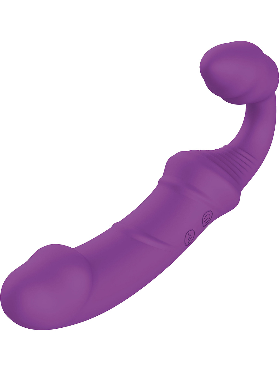 The short, wavy end (10 x 3 cm) is placed vaginally on the wearer and is held in place by the muscles of the pelvic floor. In addition, there is a grooved surface that stimulates your clitoris at the same time. With the longer, penis-shaped dildo, you can then penetrate your partner vaginally or anally.