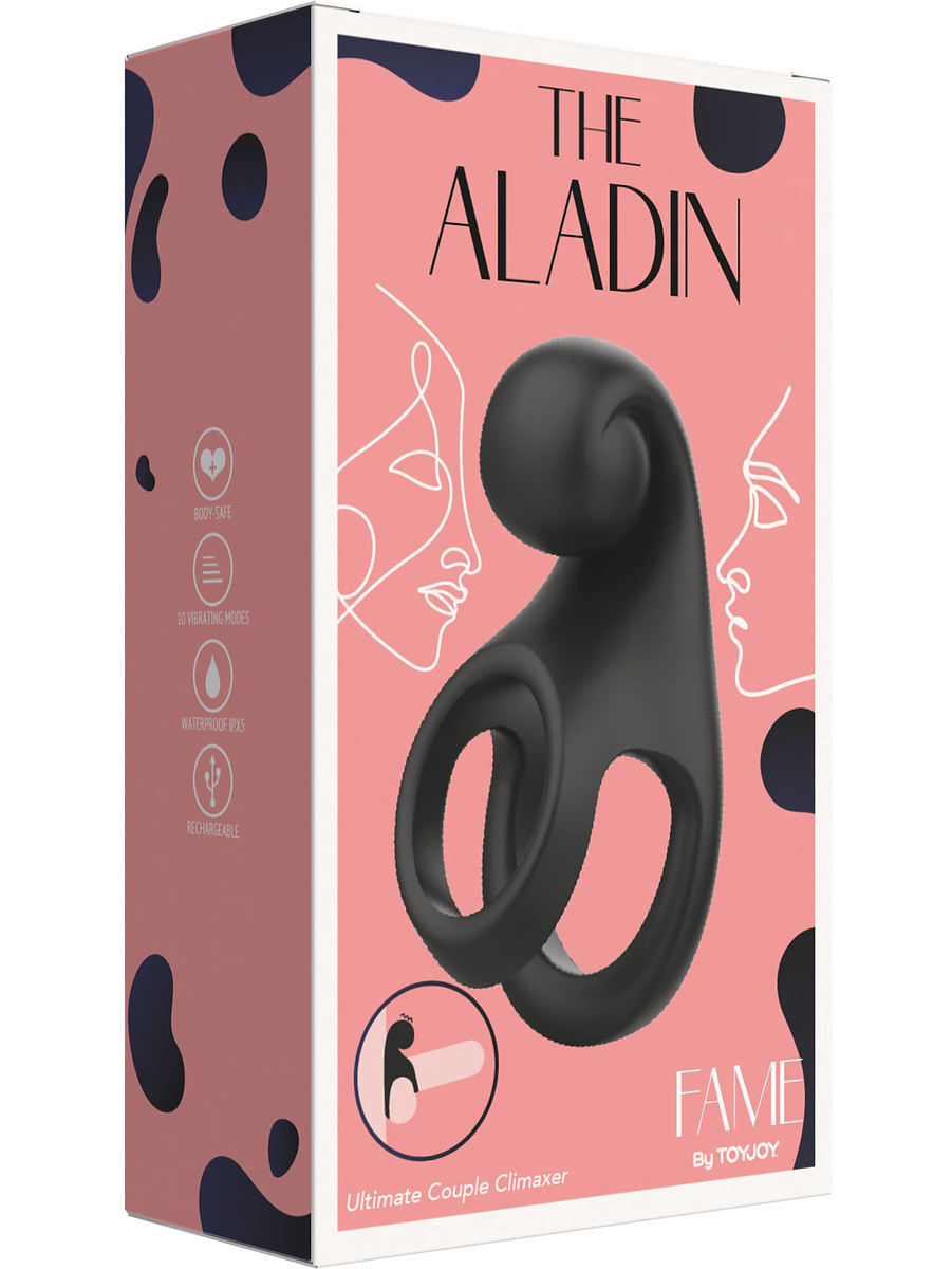 Experience intense mutual stimulation with The Aladin from TOYJOY Fame. This powerful double-ring cock ring is designed to give both partners a deeper and more synchronized experience – with every movement enhanced by rhythmic vibrations.