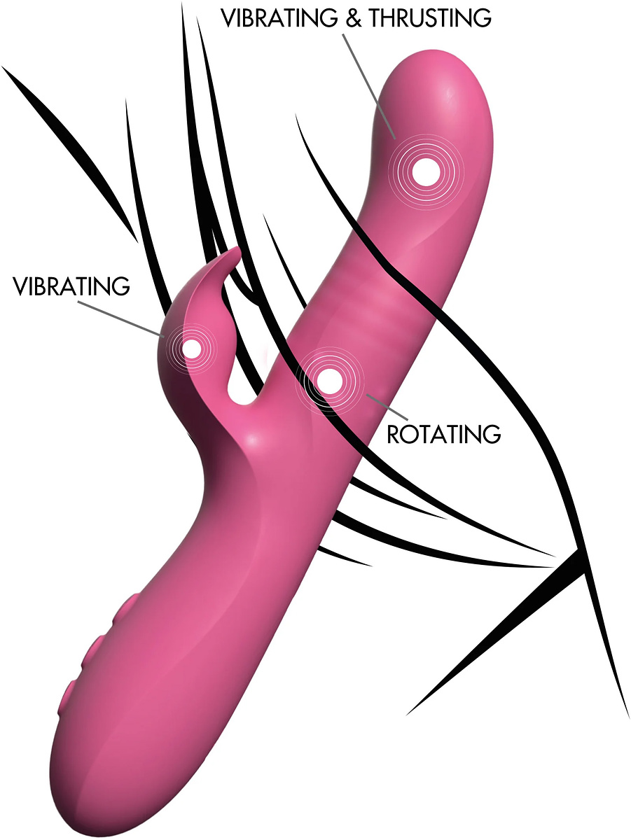 With multiple speeds and rhythms, you can easily switch between gentle warm-ups and intense climax stimulation. The three motors work in perfect harmony to create a synchronized and powerful experience. Choose from 3 thrusting-modes, 3 rotation-modes and 7 vibration-modes to tailor your pleasure.
