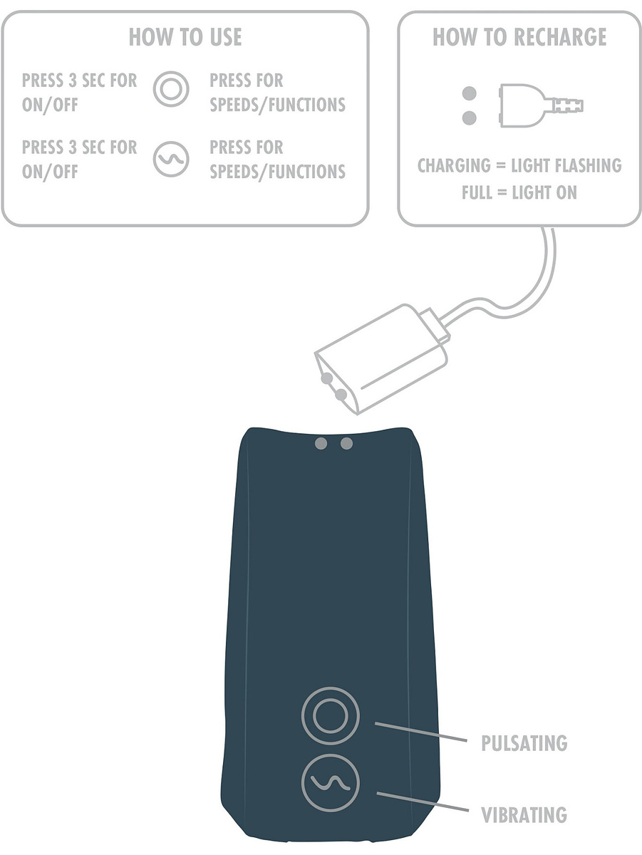 Via the buttons on the toy, you can choose between 10 different stimulation-modes (3 speeds and 7 pulsating patterns) for a wonderful variety. When the battery-level is low, you simply charge it via the magnetic USB-cable. 2 hours of charging gives up to 2 hours of pleasure.