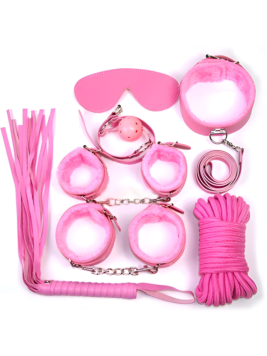 This kit of BDSM accessories is the perfect set for beginners who want to try exciting bondage. It contains the following 7 bondage-toys: