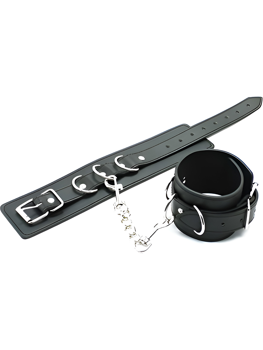 The metal chain with two carabiners holds the shackles together to limit freedom of movement. You can also attach more chains, ropes or even add extra weights to explore new levels of pleasure.