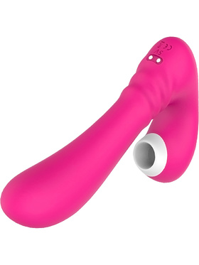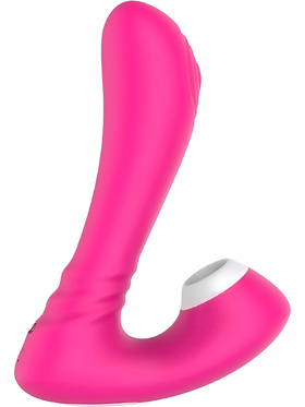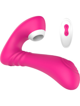 The ergonomic design is made of silky-smooth silicone for a comfortable experience every time. The feeling becomes extra pleasant with water-based lubricant. Via the buttons on the toy or the wireless remote control, you can easily choose between 9 vibration-modes and 9 suction-modes. The functions can be controlled separately for a customized experience.