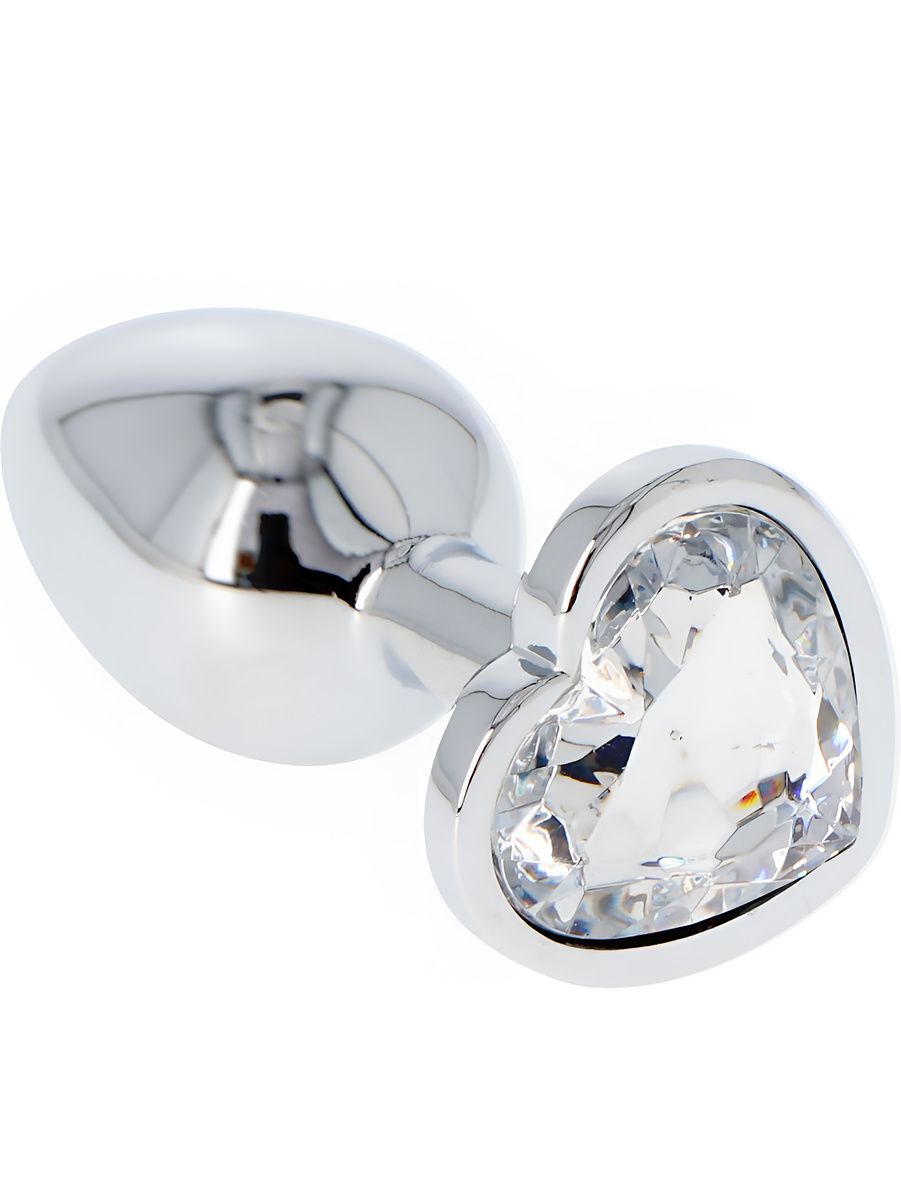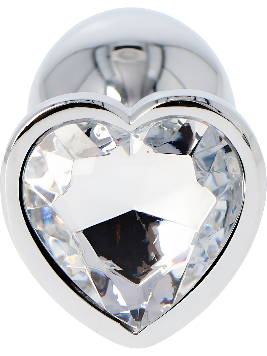 This amazing aluminum anal plug has a heart-shaped, transparent crystal in the base for a luxurious look that also turns your plug into a delicious anal jewelry.