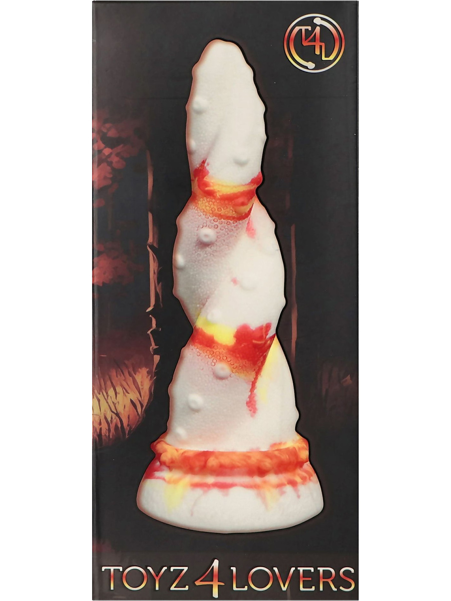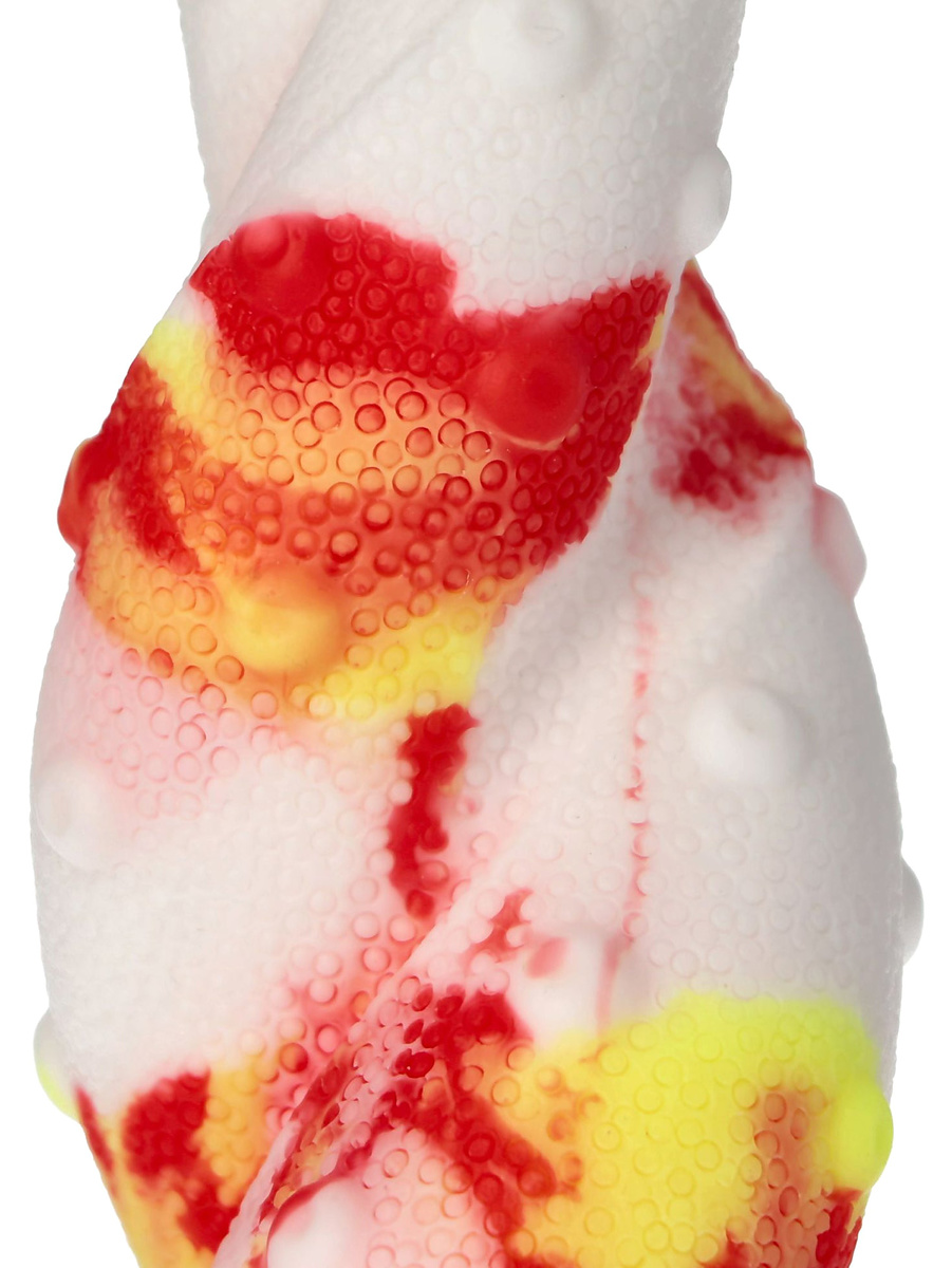 With a white base colored with fiery tones of red and yellow, Jafarlo is as eye-catching as he is pleasurable. The powerful suction cup on the bottom allows you to use him handsfree against any smooth surface - perfect for creative positions and full control.