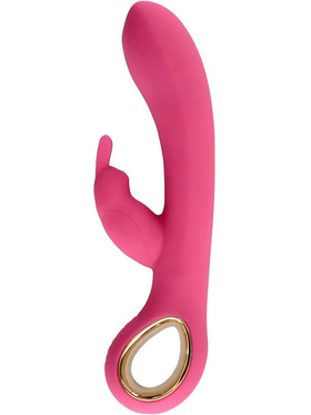 The design is created to provide deep vaginal stimulation while the clitoris receives intense vibration from the small rabbit stimulator.