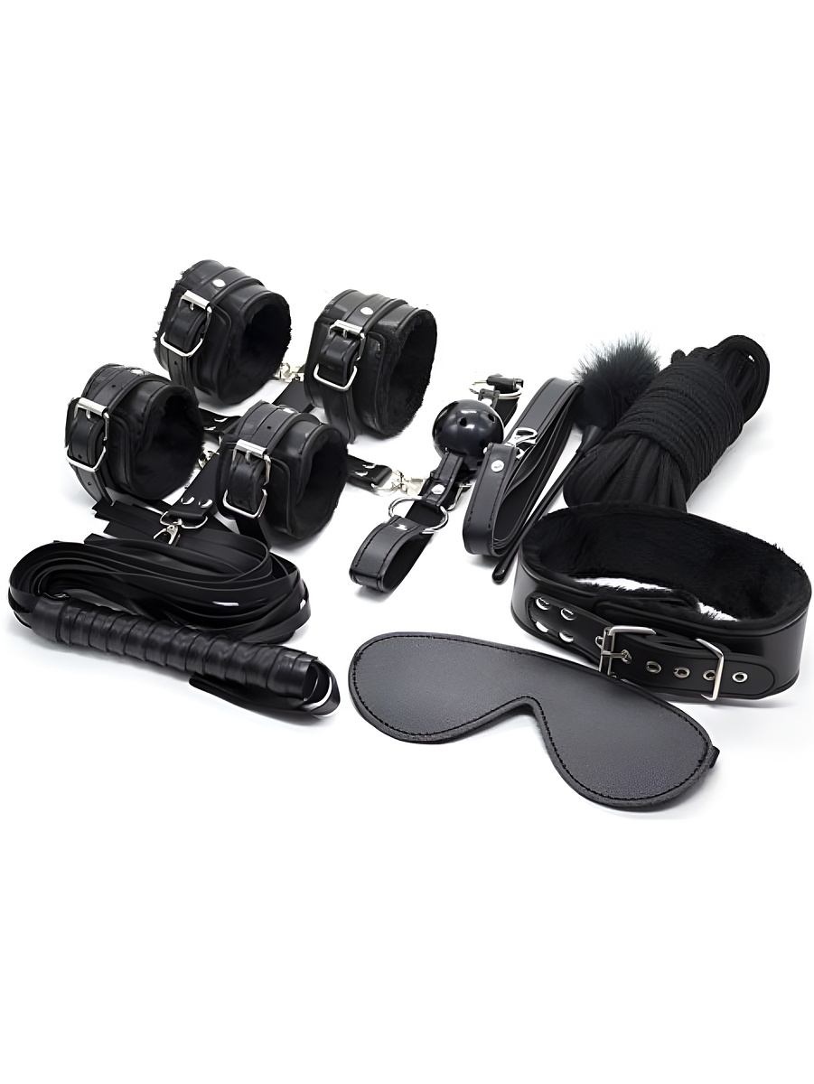 This kit of BDSM accessories is the perfect set for those experienced in the world of BDSM, but also for those who are new to domination-play. It contains the following 10 bondage-toys:
