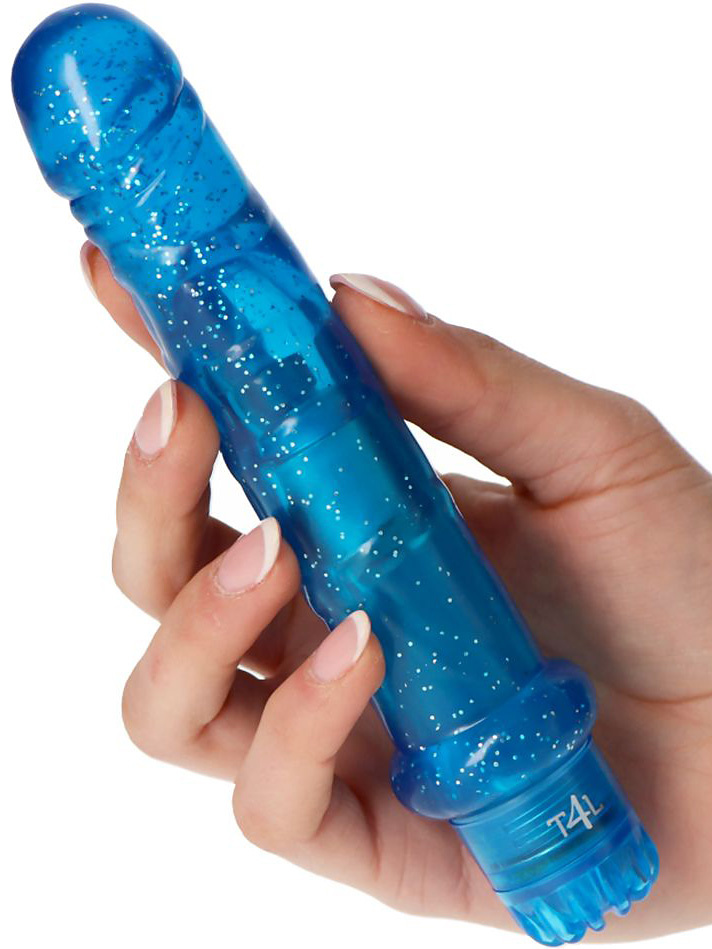 Fresh Glitter Vibrator is a glittery dildo vibrator with a straight, slim shaft and a pointed tip that provides fantastic stimulation. The vibrator is made of phthalate-free TPR-material, which makes it both soft and flexible. The blue color with glitter gives the vibrator a delicious and playful look.